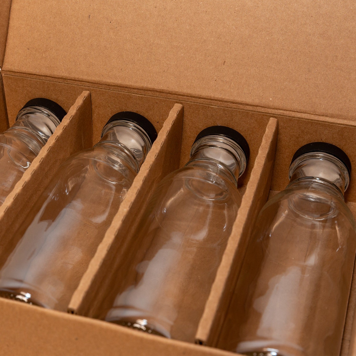 ✅ Custom Kraft Box – Fits four 12oz bottles.
