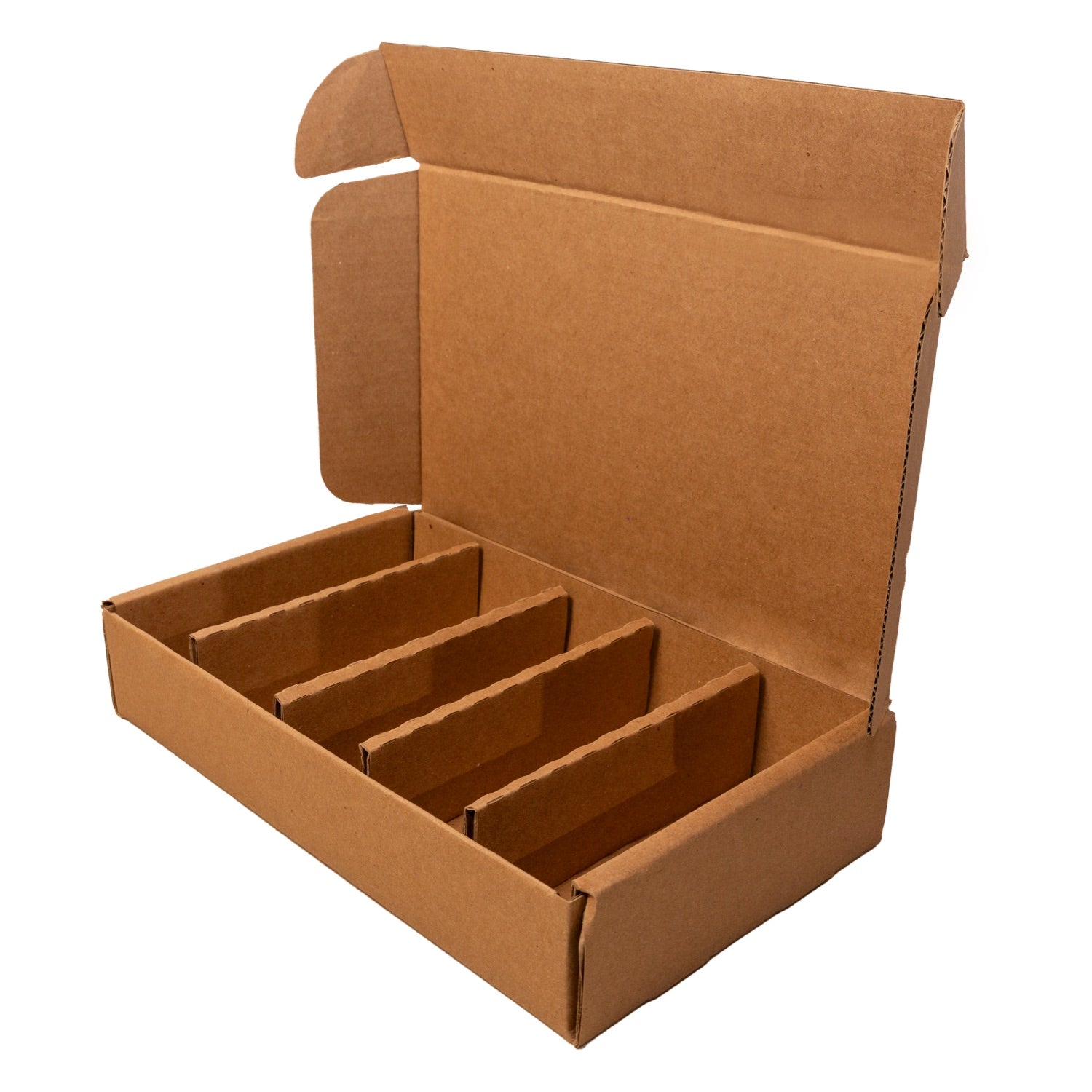 A single‑piece, custom die‑cut kraft mailer designed to ship five 12 oz Glass Woozy Bottles securely and efficiently—no loose fillers or extra tape. Fold the pre‑scored panels, lock in the integrated corrugated dividers, tuck the flaps, and you have a snug, one‑step seal that cradles each bottle. Wrap in a padded mailer or outer box and you're ready to go!